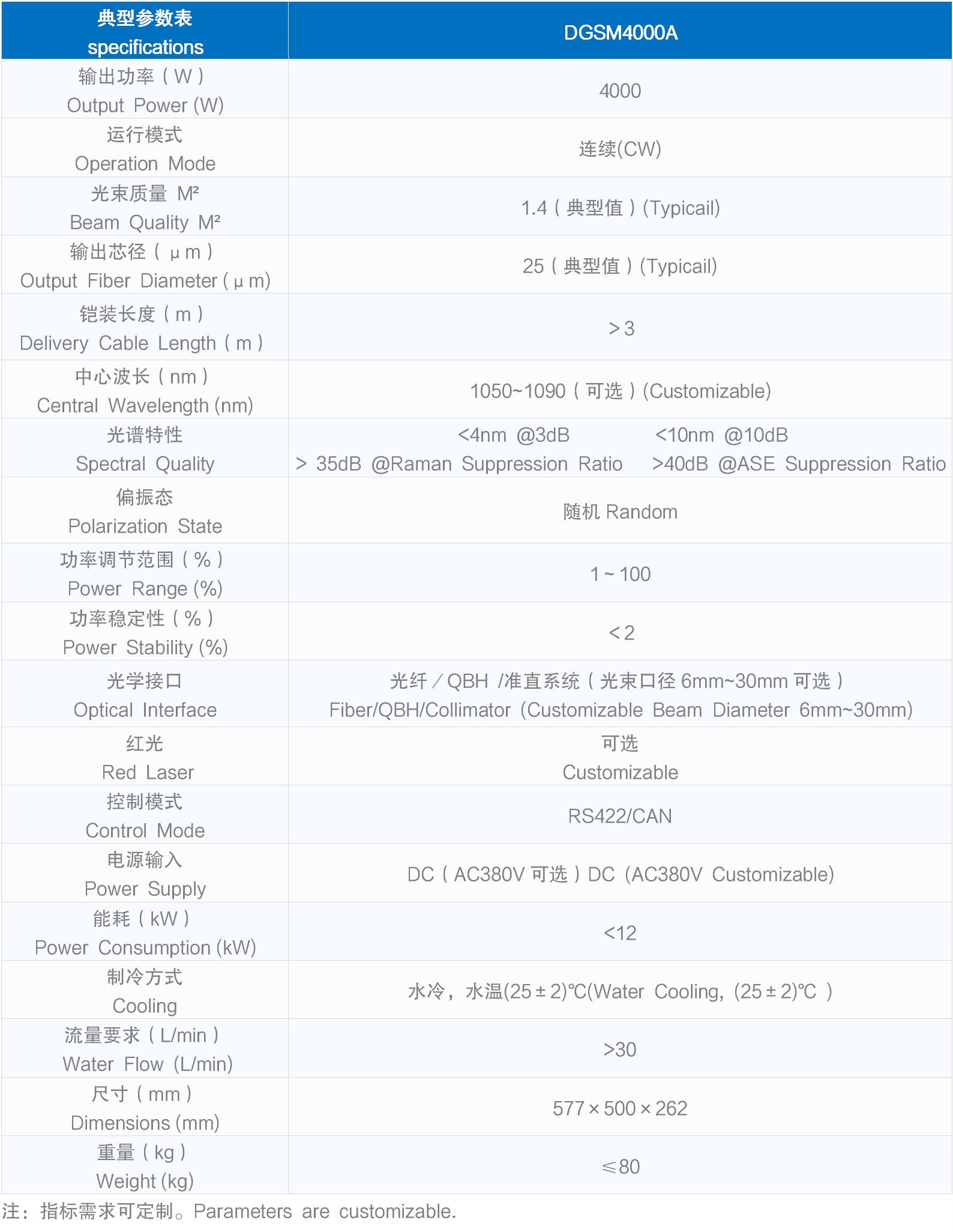 典型參數(shù)表 specifications | DGSM4000A | ||
